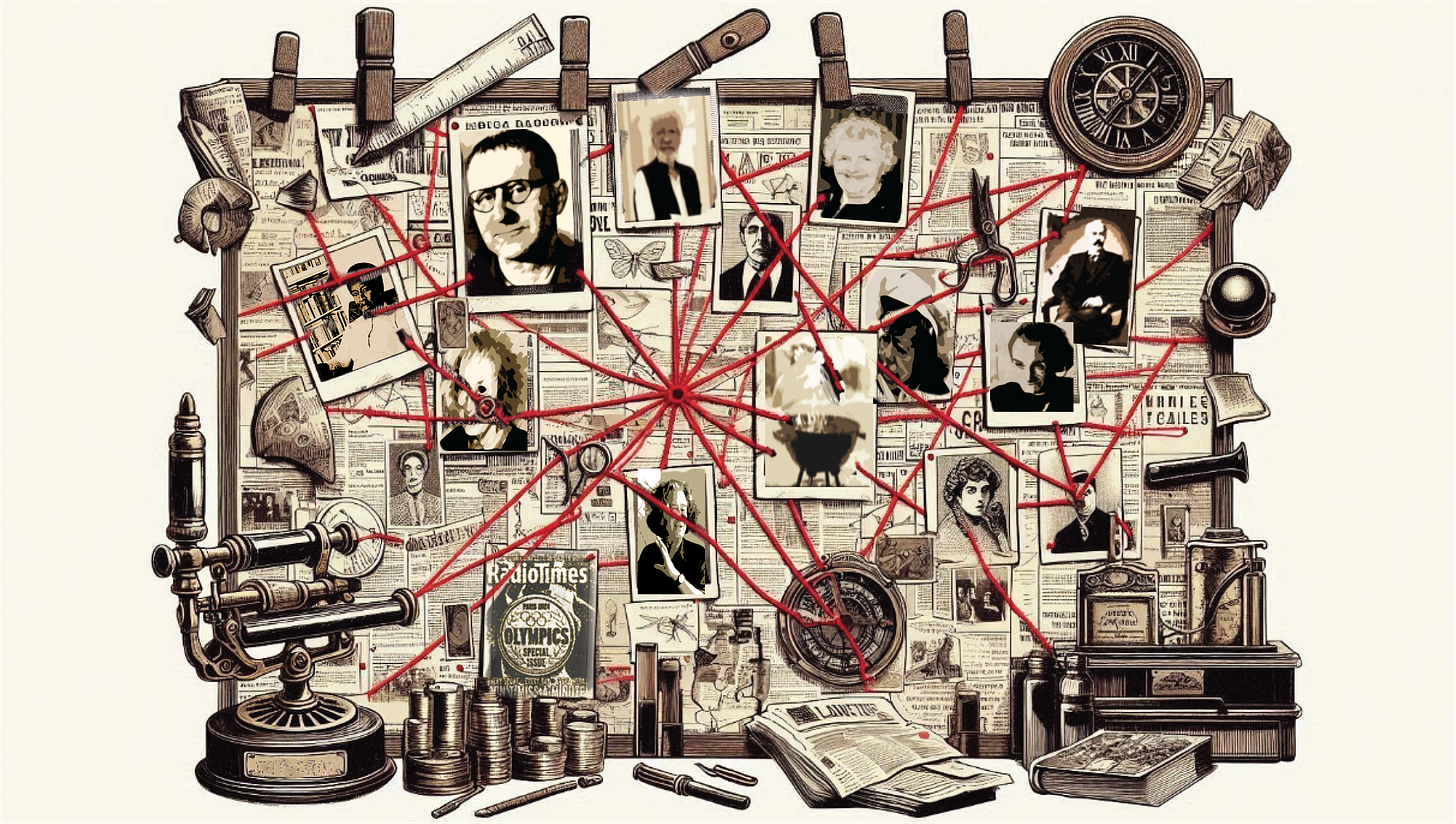 This is the centrepiece of your mystery board. The format is up to you. It can be done digitally in PowerPoint, a graphic editor (I’m using Excalidraw), or a dedicated pin board app like Padlet.