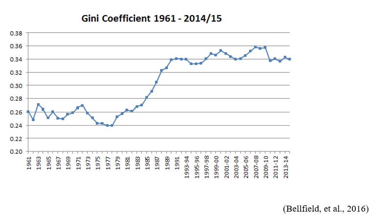 Though it should be noted that this drop was a result of reduced income in some of the upper quartiles rather than increased income in the lower quartiles (Bellfield, et al., 2016)