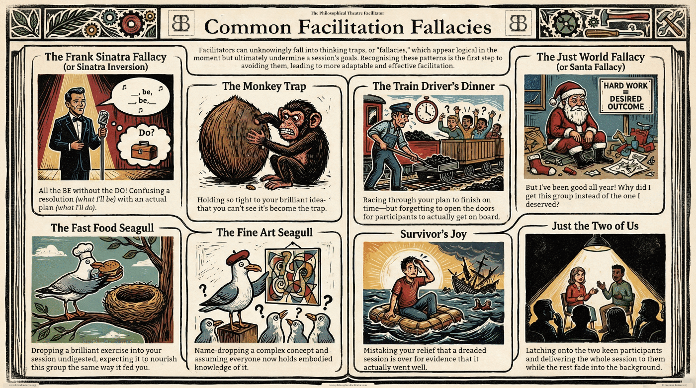 Throughout the year, we’ve examined thinking traps that undermine facilitation effectiveness - patterns that appear logical in the moment but ultimately derail sessions or planning. From holding on too tightly (The Monkey Trap) to mistaking participant relief for success (Survivor’s Joy), these eight fallacies represent the most common ways facilitators unknowingly compromise their work. Recognising these patterns is the first step to avoiding them.
